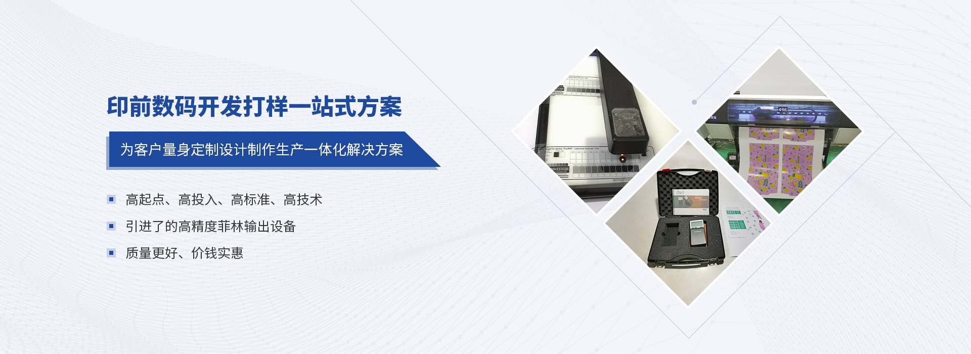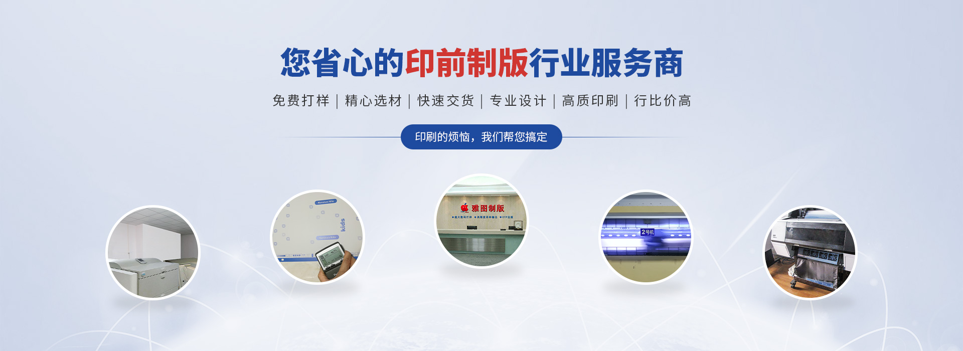 专业设备齐全,拥有:超大数码打样机8台、高精度菲林输出机2台、富士全自动CTP出版机一套等设备颜色准